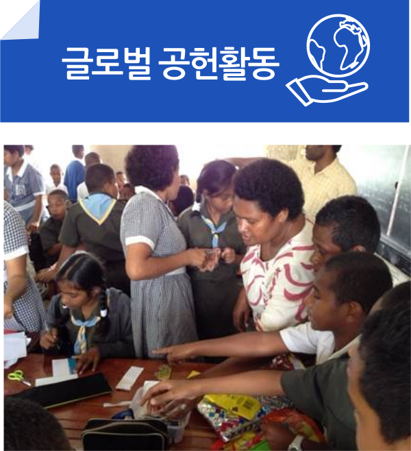 개발도상국의 Local NGO와의 협업을 통해 현지 초등학생들을 상대로한 Recycling 관련 교육 등의 봉사활동에 참여하고 있습니다. 학생들은 Recycling 자재를 활용하여 수공예품을 직접 만들어 관광객들에게 지역특산품으로 판매할 수 있는 기회를 얻고 있습니다.